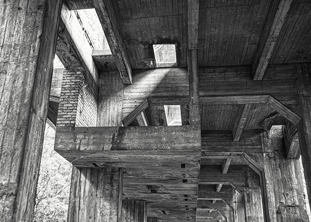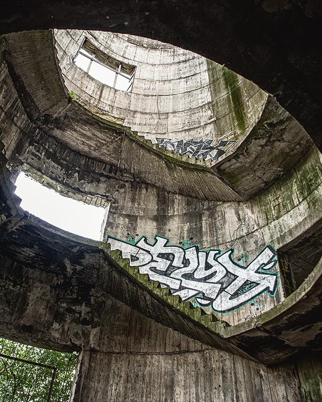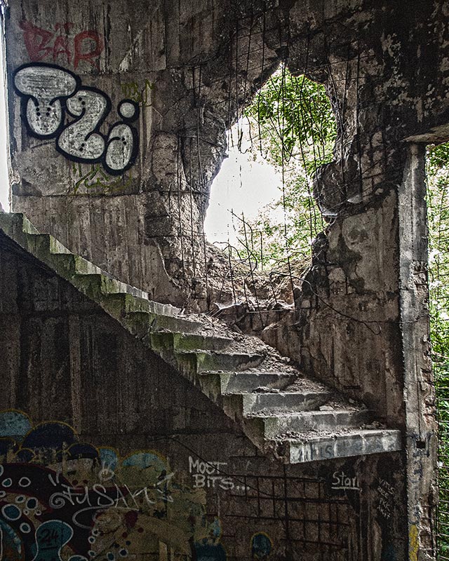 Trotz der Jahre und der zurückeroberten Natur ist das Gelände gut lesbar. Wege, Achsen, Ebenen. Man erkennt sofort, wie dieser Ort gedacht war. Die Dimensionen sind klar, die Strukturen offen. Gerade für die Fotografie ist das bemerkenswert: Formen statt Chaos, Flächen statt Fragmente. Beton als Motiv, nicht als Kulisse.